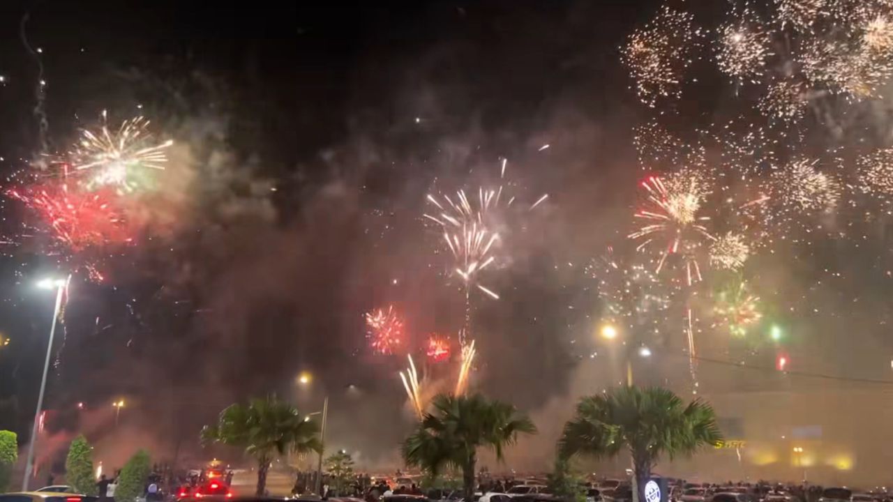 Menurut perkongsian klip video dimuat naik seorang pengguna di media sosial, kelihatan orang ramai mengambil kesempatan bermain bunga api di sebuah kawasan lapang.