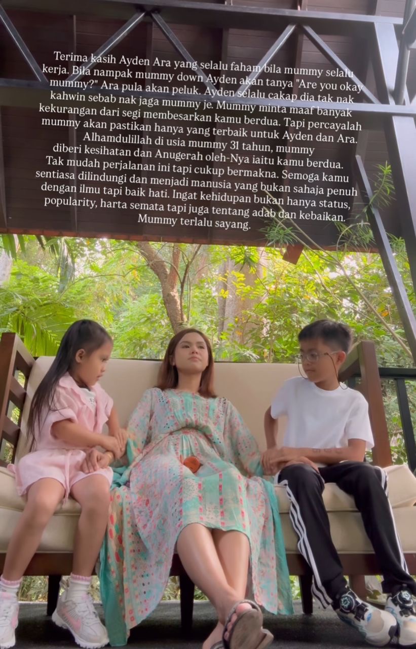 “Saya minta maaf sebab banyak kekurangan dari segi membesarkan kamu berdua tetapi percayalah akan pastikan hanya yang terbaik untuk Ayden dan Ara,” katanya dalam satu hantaran Instagram baru-baru ini.
