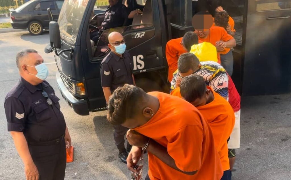 Terdahulu, kesemua suspek terbabit dibawa ke Mahkamah Majistret George Town dalam keadaan tangan bergari dan mengenakan pakaian lokap polis berwarna jingga kira-kira pukul 8.40 pagi tadi.