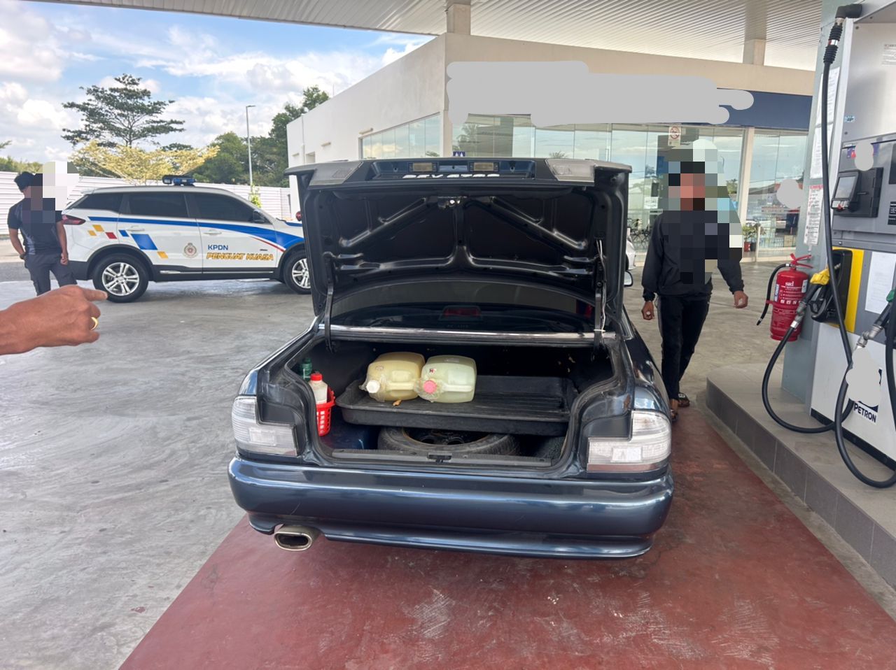 Pengarah Pejabat KPDN negeri, Rohaida Hassan berkata, anggota penguat kuasa bertindak menahan kereta jenis Proton Wira dinaiki suspek kerana disyaki mempunyai tangki yang diubah suai.