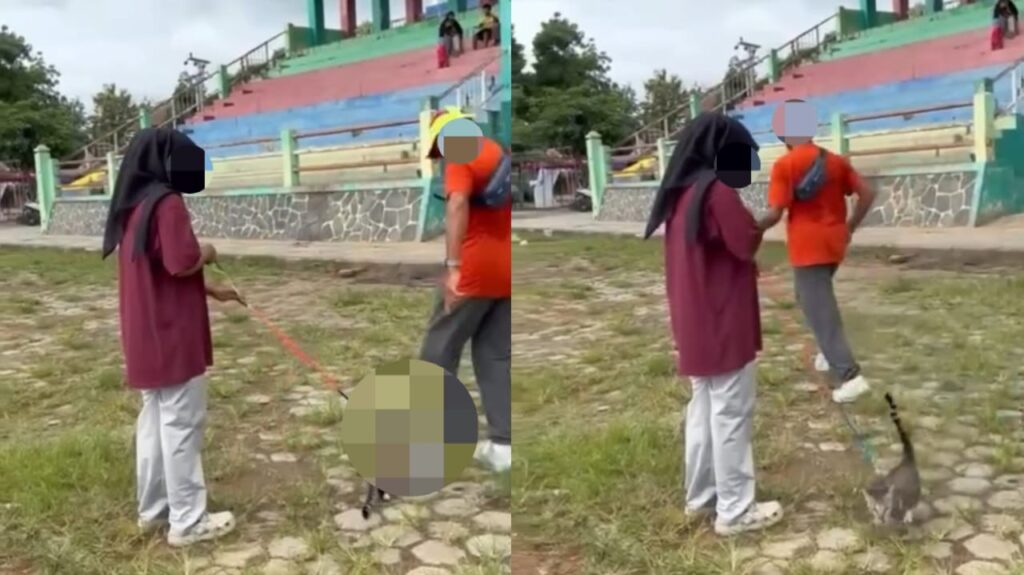 PETALING JAYA – Seorang wanita meluahkan rasa kesal dengan tindakan seorang lelaki yang menyepak kucingnya ketika haiwan itu dibawa berjalan di kawasan lapang di Blora, Indonesia, minggu lalu.