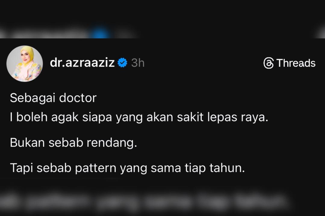 Menerusi satu hantaran oleh Dr. Azra Abd Aziz di laman Threads, masalah sebenar bukan kerana makan banyak, tetapi lebih kepada corak yang sama setiap tahun, iaitu makan tanpa henti, minum air kurang, dan tidur tidak mencukupi sehingga badan tidak sempat pulih.