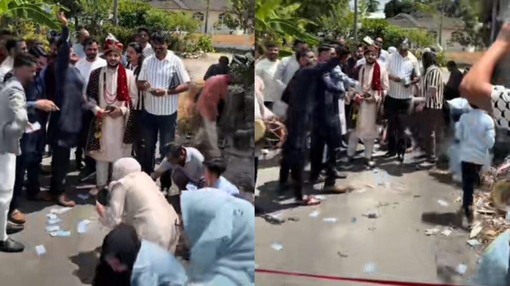 Menerusi perkongsian di TikTok, kelihatan sekumpulan rakan pengantin lelaki warga Pakistan menabur wang kertas RM1 berjumlah RM4,000 ke udara di hadapan keluarga pengantin perempuan.