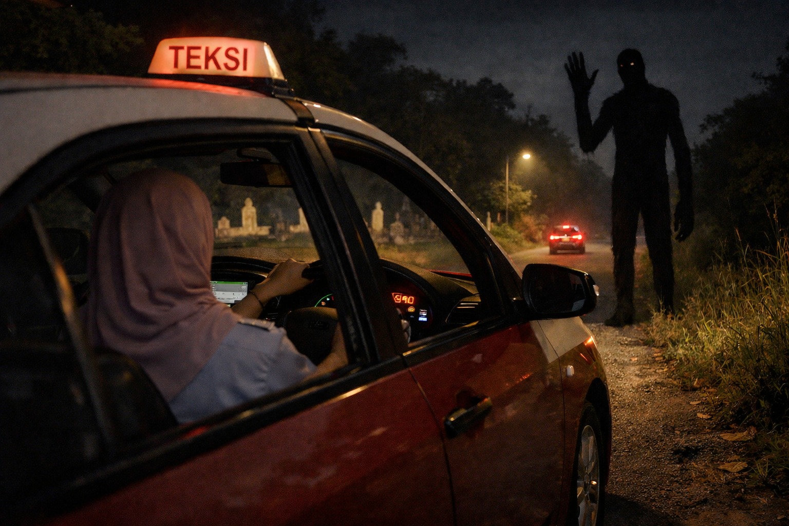 “Mami cakap, ‘ni bukan manusia’. Mami pun tutup pintu, hidupkan enjin. Mami tengok lagi, dia lambai-lambai, mami keluar terus ke jalan utama berhenti di tempat teksi.