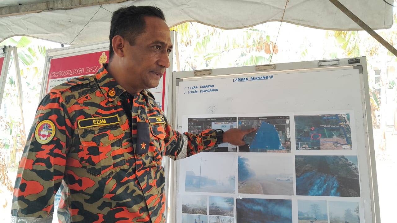 “Pemadaman memasuki hari ketiga dan dijangkakan lebih 35 peratus daripada 22 ekar tanah yang terbakar iaitu 10 ekar melibatkan kebun kelapa sawit dan 12 ekar kebun nanas.