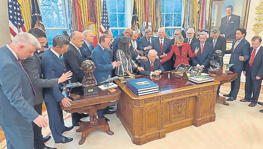 BLOOD froze upon seeing Donald Trump receiving his so-called blessings from evangelical pastors in the Oval Office on March 5.