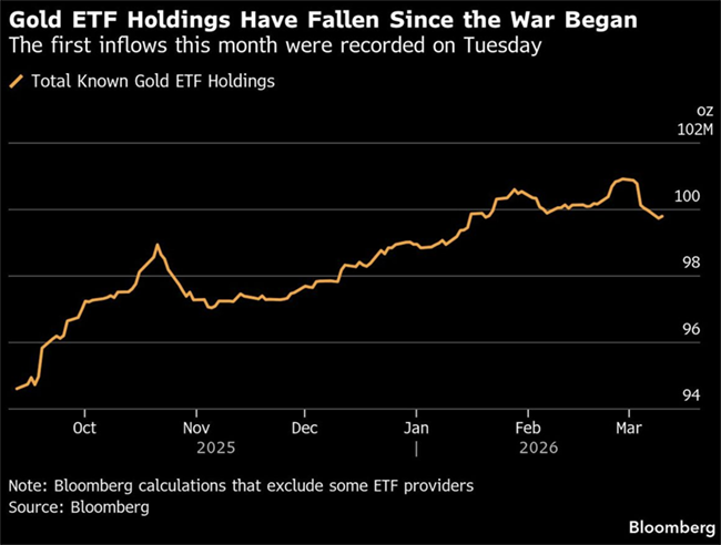 As well as enduring the prospect of higher borrowing costs — a headwind for bullion, which doesn’t pay interest — gold is a source of liquidity used by investors to shore up other parts of their portfolios when needed. Since the war broke out, the volume of gold held by exchange-traded funds has declined — though inflows were recorded again on Tuesday after holdings fell last week by the most in more than two years.