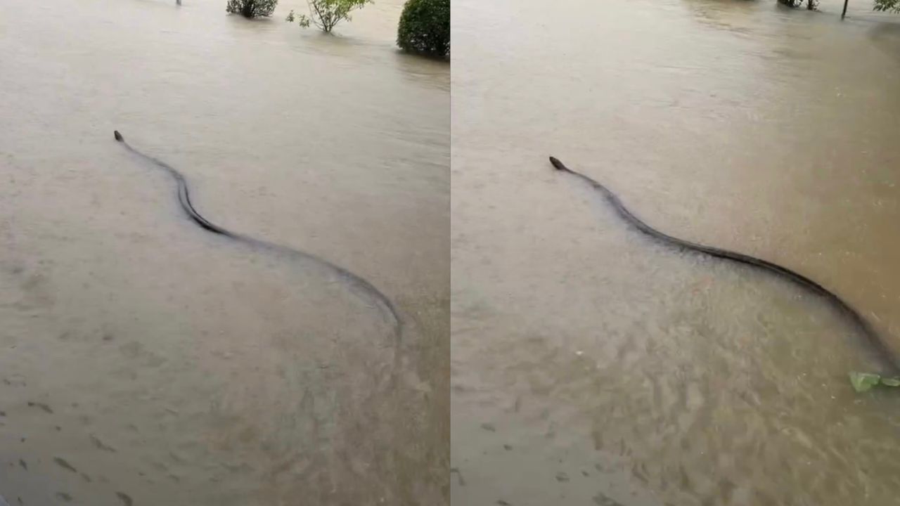 BANGKOK – Satu klip video tular memaparkan seekor ular gergasi berwarna hitam menyusur di dalam banjir dalam kejadian yang mencetuskan kebimbangan penduduk, lapor portal berita Free Press Journal.